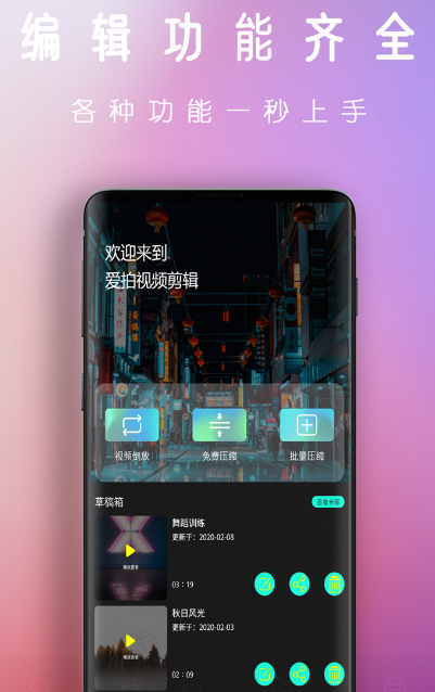 该app可让短视频华丽转身,拥有超级齐全的编辑功能,各种功能一秒就能上手,视频支持一键倒放,批量压缩,还能提取视频中的音乐当做铃声。