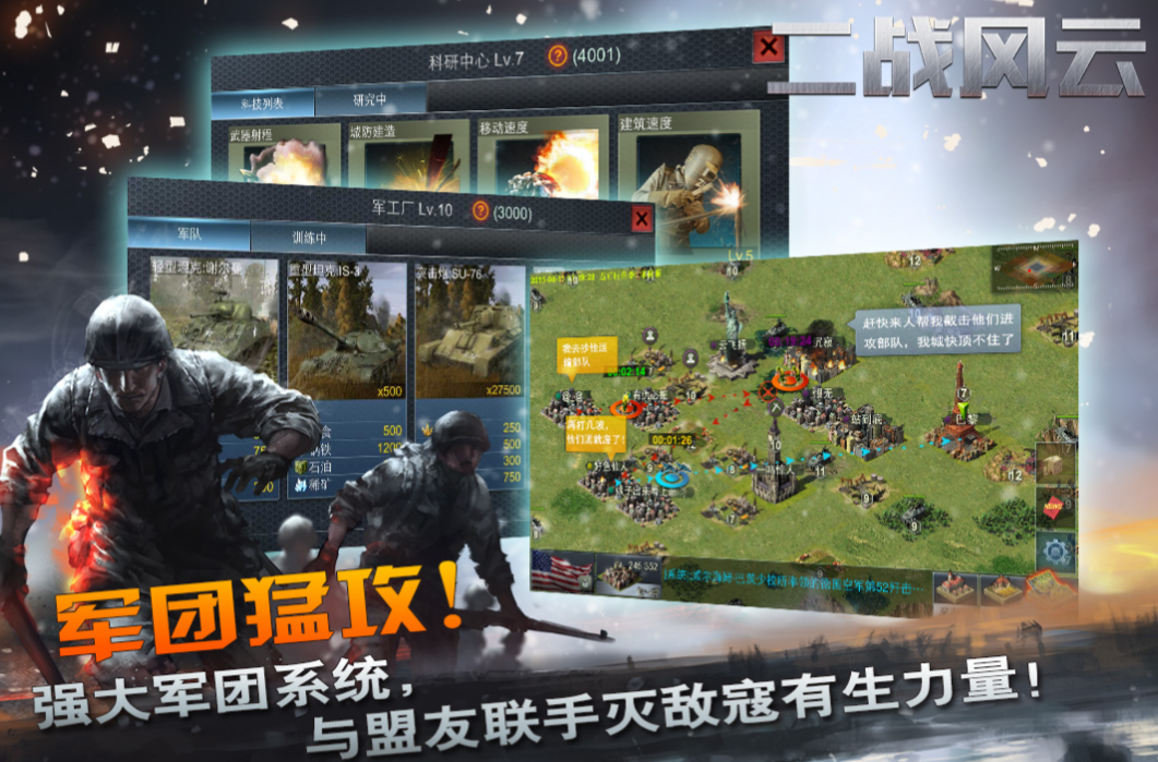 二战风云就是款可以扩张自己领地的二战主题硬核游戏,清晰精致的沙盘地图和质感十足的建筑模型让玩家身临其境,海量的二战兵种和战争道具也让玩家们大开眼界,真实的历史进程给玩家普及了有用的战争知识,写实的战场景象和气势如虹的BGM令玩家们热血沸腾,想成为二战时期的上位者就下载二战风云试试吧。