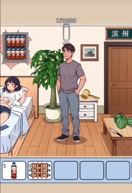 再接着我们移开妹妹床垫,我们还会发现整整4000瓶可乐,想不到这个妹妹和她哥哥一样都是一对卧龙凤雏啊,这时小哥还说他每天都要闻着这些可乐睡觉,看来小哥对这些可乐真是爱的深沉啊,接着我们打开地板还会发现2000瓶可乐,砸开花瓶还有6瓶可乐,切开西瓜还有6瓶,最后我们打开浴室门就可以拿到剩余的999瓶可乐了。