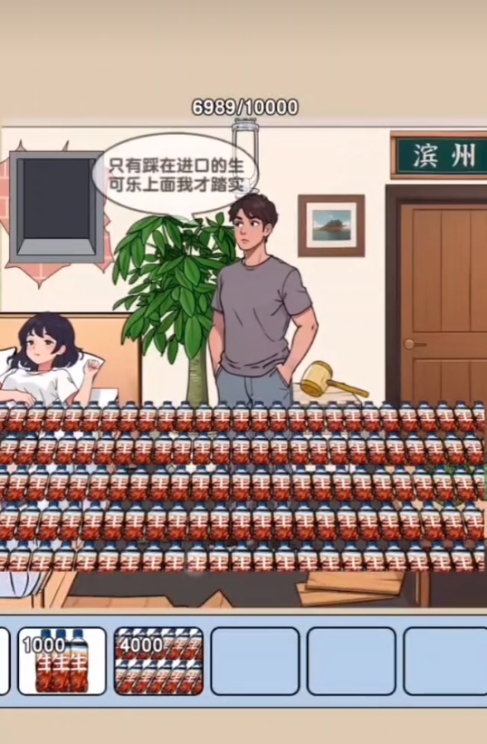 接着我们拿起门口柜子上的大锤,砸开妹妹床的正上方,就可以获得95瓶生可乐,到底是谁会把可乐藏在这种地方啊。这个时候小哥还来上一句这是进口生可乐必须藏在墙里,看来这小小的屋子里隐藏了不少啊。接着我们打开妹妹的手机,我们还会发现他们在意大利KTV,南极大酒店,海底会所分别藏了888,999,1000瓶可乐,藏得还挺深啊。