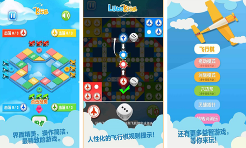 《飞行棋》是一款适合多人玩的休闲小游戏,游戏规则很简单也很容易上手,想必大家小时候或多或少都玩过,游戏每一局都会有规则提示。精美的界面设计让人眼前一亮,游戏除了飞行棋模式外还设计了多重趣味玩法,无论是轻松欢乐的消消乐模式还是颇具挑战的拖动模式都能随心选择。