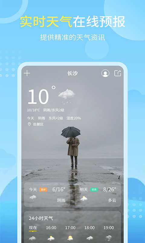 知趣天气这款软件是一款能够是一款能够以虚拟形象展示天气变化情况的App软件,如果天气是晴空万里的话,软件中会有笑脸的太阳以及浮云飘在空中象征着天气非常的晴朗,如果天气要下雨的话,软件中也会有雨点的图案来展示出来,所以大家可以借助这些图案的形式,更好地了解天气的变化情况,并且图案十分的真实而且辨识度比较高,可以为我们查看天气的情况信息节省工作时间。