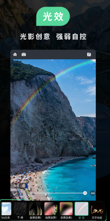 喜欢拍风景、记录生活的朋友们课不要错付此软件了,平台中可以变换各种光线效果,而且都是最真实的光线,在拍风景时如果能加上光线以及光效叠加,大片感随时出现。大家再给拍出的照片加上文艺文字,表达自己的心情,让照片有内涵。
