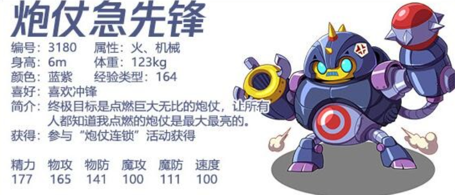 洛克王国之中我们要收罗天下各式精灵,在通过不断培养、冒险、战斗来进行升级,夺得最强宠物称号。那么洛克王国手游炮仗急先锋怎么样?而炮仗急先锋则是一种机械系的物攻类型宠物,编号为3180,是云中城系列超进化系列的压轴宠物。其实它拥有强大的火力和抵抗能力,是一款非常适合PVP的宠物。本文将为大家解读炮仗急先锋的攻略。