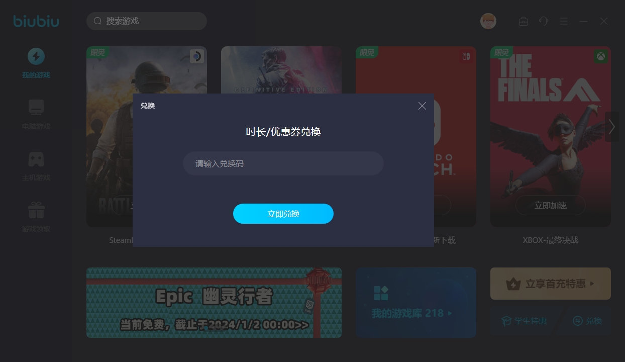 此外根据小编的了解,该平台的福利方面表现也很是突出,针对新用户给到了24h的免费加速试用时长,玩家能够去针对各类喜欢作品开启加速服务,支持主机、pc等多种不同的端口,当然还有大量的游戏限时免费加速,到时候就算各位不是会员也能通过它来帮助自己,现在通过软件的首页兑换窗口去输入“biubiu不卡顿”,大家还能额外去领取到3天的免费加速时长,这也是能帮助大家去免费体验的福利之一哦。