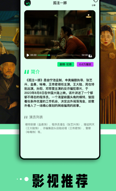 现在很多老年人表示并不知道该选择哪款app才能免费观看,这款软件满足你的需求,其实这是一款影视播放器,专为影迷打造,可以播放本地链接及视频。另外还有精彩影视推荐,你发现精彩好剧,采用图文结合的模式推送出解读知识,带你畅享电影世界,感受影视带来的精彩极乐趣。
