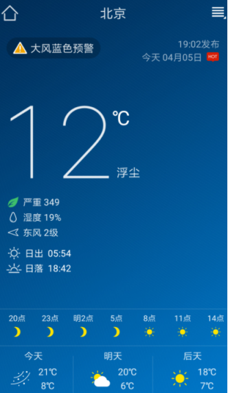 想要了解未来40日天气预报以及未来96小时每小时的天气变化就可选择这款软件,它还具有恶劣天气预警推送功能,当暴雨以及恶劣天气来临前都会发出警报提示,能够精确到乡镇。还拥有空气质量监测,全方位的呵护用户的健康。通过服务简化生活,可了解每天如何穿衣搭配。