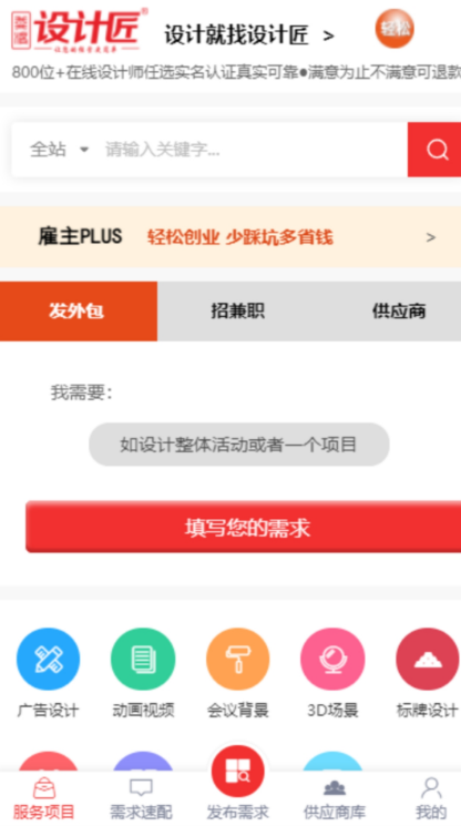 对于从事平面设计或者是3d设计的人群来说,相信对该软件都是比较熟悉的,专门为设计人群设置里边拥有共享的素材库以及广告供应商库,不管自己在哪个城市,这里都为全国广告人提供一个便捷专业的共享平台,包括各种3d设计师以及平面设计师,全天候为各大中小企业解决要设计的需求,如果想要制作海报的话,也可发布自己的需求,有专业人士给自己完成。