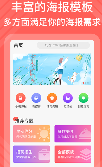 如果再选择免费制作海报软件的时候,里边拥有着众多的模板,自然在制作的过程当中会更为容易,这款软件就是专门为制作海报的人群设置,拥有10万多个精美海报内容。不管任何场景都可利用里边的一些海报轻轻松松的做到,不仅海报模板非常的丰富,满足每个人的需求,还有多种风格的素材,可随心地创作出每个用户想要的。在节日热点当中,主要是紧跟实时热点,每天都会有不同的海报宣传内容。