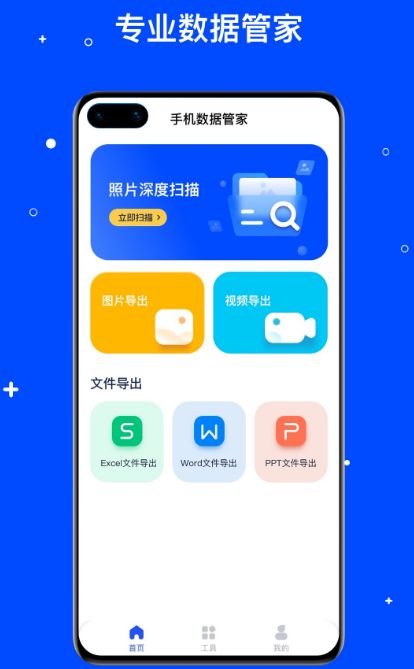 当手机需要一个数据管家的时候,这一个软件就能起到一个很大的帮助,它是专业数据管家及安全隐私管理,一键快速导入等为一体。用户在使用的时候不需要注册,就能对手机的各种重要内容进行高效管理,只需一键扫描就能导出手机拍摄的图片或者是文件视频,也可将各种内容分类展示。