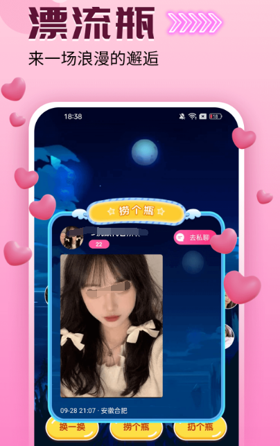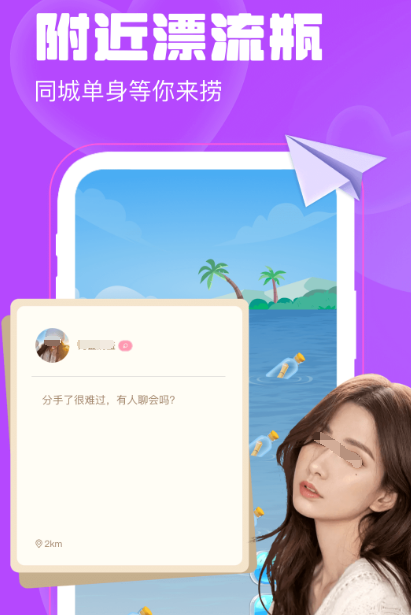 想要在生活当中寻找新朋友,该软件提供同城异性交友的功能,通过漂流瓶的方式,可将自己藏在心底里的话放进瓶子里,有缘人捡到以后就可开启畅聊模式。