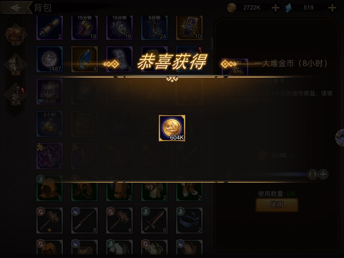 而在金币的使用方法上,小编更建议玩家将金币全花在升级英雄上,毕竟后期升级英雄所需的金币总量非常夸张,使得玩家从初期开始就要慢慢积累。不建议玩家用金币购买商店里的装备,这些装备在后期基本上都能通过挂机产出。