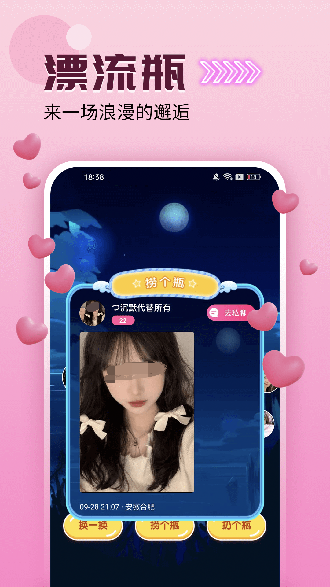 这款APP帮助了无数年轻人在线脱单,他独特的交友模式以及线上聊天模式都深受年轻人的喜爱,为此大家可以放心的使用这款APP,无论是凌晨,深夜还是闲暇之余都可以拿出,这款APP来向自己感兴趣的,陌生人打招呼之后就可以分享自己的生活乐趣,兴趣爱好等等。