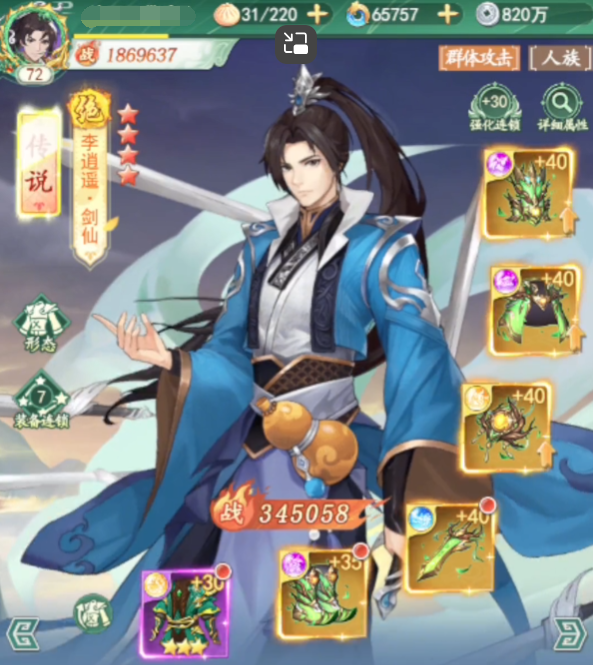 小编推荐阵容为李逍遥 独孤剑圣 柳梦璃 紫英 酒剑仙,这样体系就基本完成了。李逍遥他的绝技“剑仙之道”可以对敌方单体造成高额的仙术伤害,并且有一定概率触发连击,同时还可以为自己增加仙术免疫的效果,提高生存能力。李逍遥可以在七日开服活动中通过完成任务免费获取,是一个不可错过的伙伴。酒剑仙司徒钟是另一位物理输出的伙伴,他的绝技“醉剑仙”可以对敌方单体造成巨大的物理伤害,并且有一定概率触发暴击,同时还可以为全体伙伴带来伤害提升的效果,是一个增强剑圣阵容的重要角色。