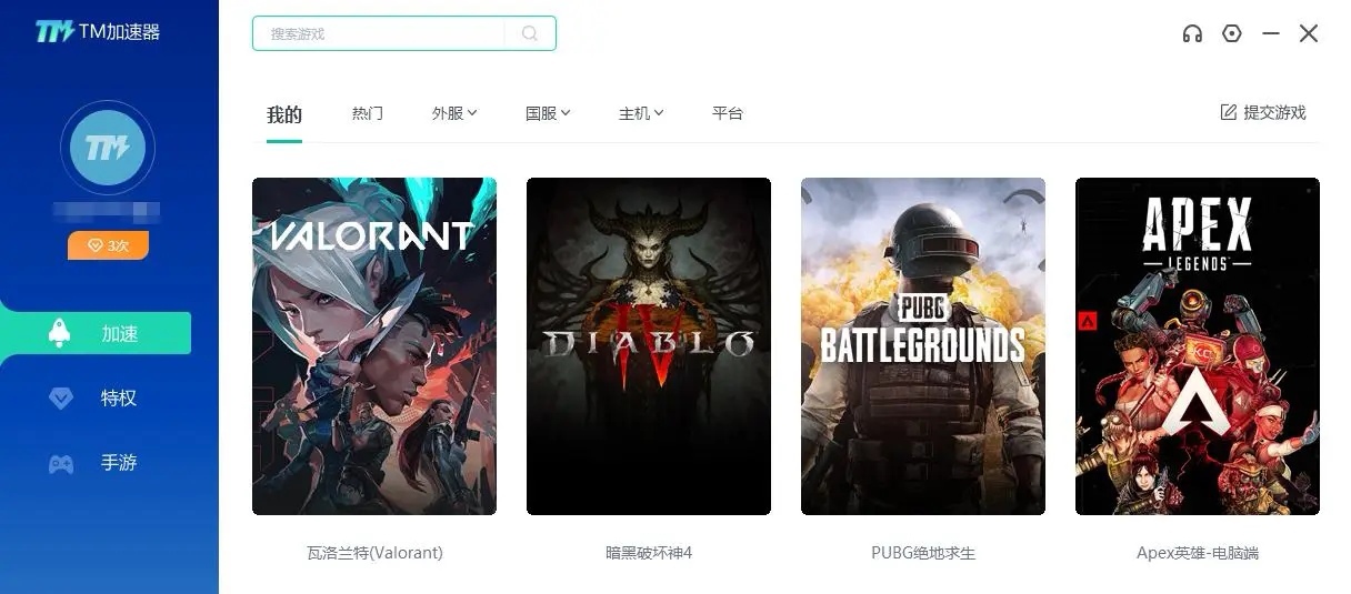 不仅有专业的加速服务而且还可以让大家免费试用,为广大游戏爱好者提供高速且稳定的网络环境,一见就可以为自己喜欢的游戏进行加速,解决大家在玩游戏过程中遇到的登录困难、丢包、卡顿、掉线等问题,而且支持加速的游戏数量非常多类型也很丰富,一键畅玩全球好玩游戏,不需要会员就可以体验加速服务。