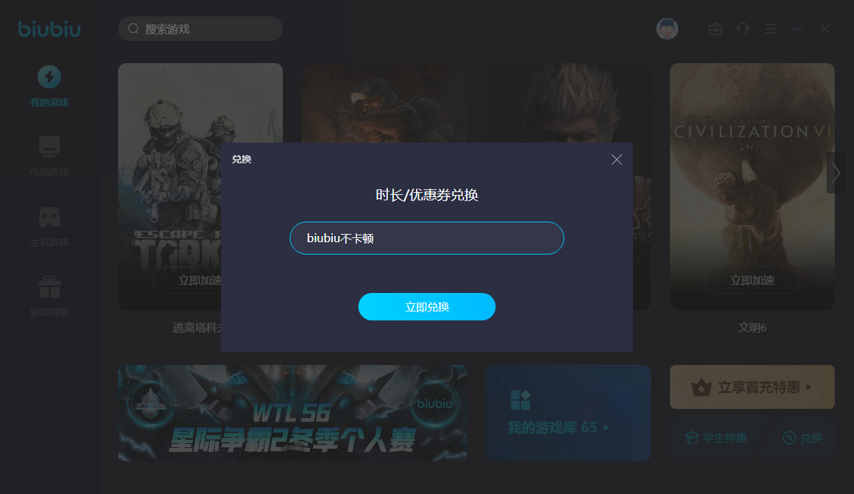 对于初次注册的朋友来说,还可以享受长达24H的免费加速体验。若是大家觉得还不够过瘾的话,只要第一次输入兑换码【biubiu不卡顿】,接着便可获得三天免费加速时长,让你一次加速个过瘾,甚至在三天的时间内通关一个主机游戏也不是不可能,这样你就慢慢会爱上biubiu,因为有了它玩游戏的话,就相当于多了一个装备,非常给力!