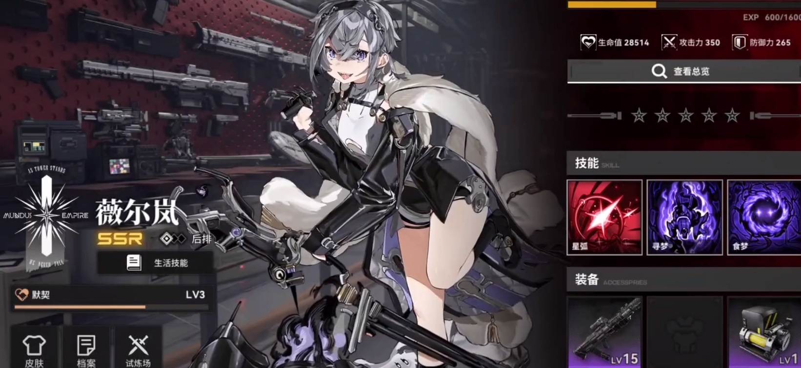 薇尔岚:这也是一个输出型的SSR角色,她的攻击力同样更客观,经过培养后能够打出非常强力的表现,技能方面除了有不错的输出还能提供控制,其中“星弧”就是一个典型的例子,既可以施放飞弹降低敌人攻速,还有几率令其陷入冰封从而无法行动。