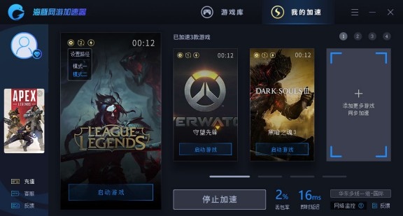 作为国内比较有名的一个专业加速器,能够为各位玩家提供非常好的加速服务,可以解决大家日常体验游戏当中遇到的一些掉包和登录困难的问题,特别是加载缓慢和网卡的问题,提高网络的稳定性,为大家上分和提高等级保驾护航,各种类型的游戏可以立即点开畅玩,多个区服都能无障碍加速,专项线路加速效果稳定且高效,适配各种机型和设备。