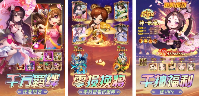 你将亲临三国大战的前线,感受历史时代流转的惊天动地。无论是智慧还是勇气,在万人大战中都能得到最完美的体现。制定最佳攻防策略,笑傲江湖!独此一味的战斗快感,让你在游戏中尽享无尽的乐趣。你可以在这里建立自己的江湖势力,也可以结交志同道合的好友,一起书写一段段传奇的九州江湖。激发你内心的热血和战斗欲望。快来开启你与九州江湖的浪漫邂逅吧!