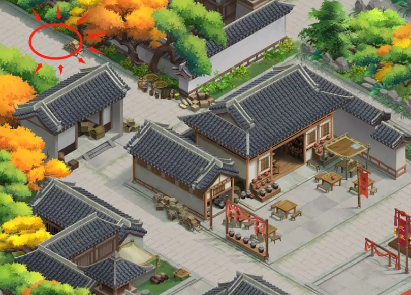 第一个宝箱在白河村的韩医仙家门口,这是一个很容易找到的宝箱,只需要将四个点按照顺时针或逆时针的方向连起来即可。