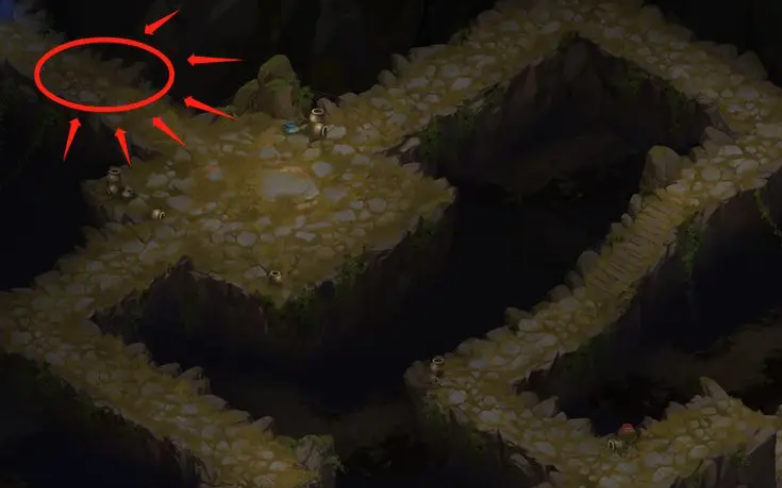 第四个宝箱在黑水镇的上方,这是一个需要打怪解锁的宝箱,玩家需要先消灭周围的敌人才能接近。这个宝箱的连线方法是先从左上角的点开始,然后向右上方的点连,再向右下方的点连,然后向左下方的点连,最后回到左上角的点,形成一个正方形。