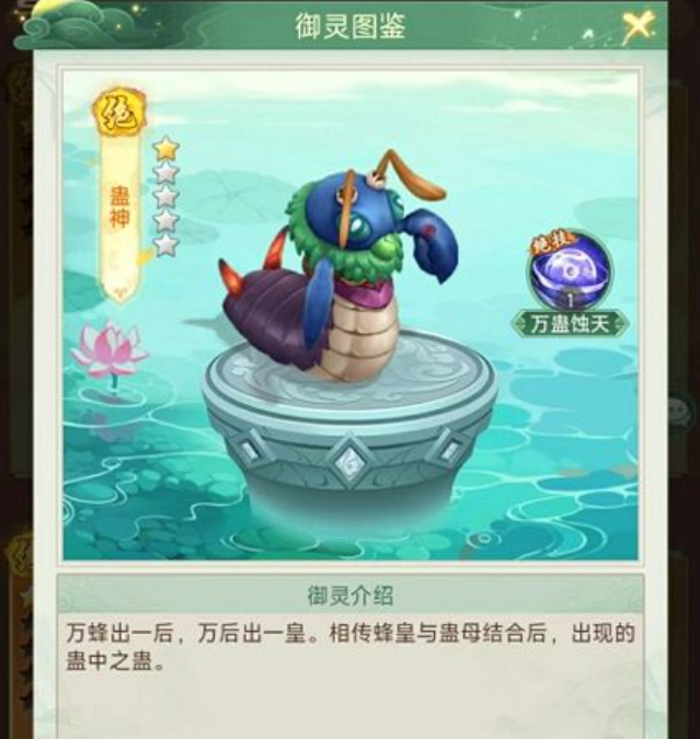 最后推荐的御灵是蛊神,这个御灵在游戏中的定位是一个辅助型的御灵。它的主要作用是在战斗过程中给玩家们提供增伤和防御力的效果。可以让整个队伍的属性都获得相应的加成。也是一个非常受欢迎的御灵角色。