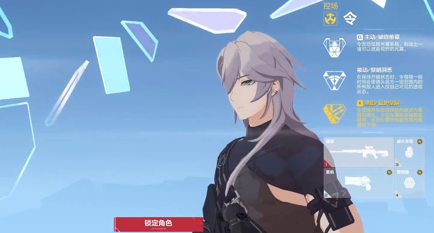 被动则可以帮助令透视敌人,触发条件也很简单,只需要开镜即可触发,透视能直接无视掩体,实用性非常高,不过无法共享给队友,最后的大招则可以强化令主动技能中的光幕,除了能够放置更多光幕以外,还能让其新增拦截子弹的能力,如此一来,不仅更加全面的遮挡了敌人的视野,还对己方成员起到了保护。