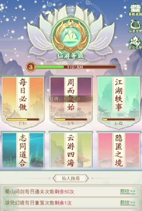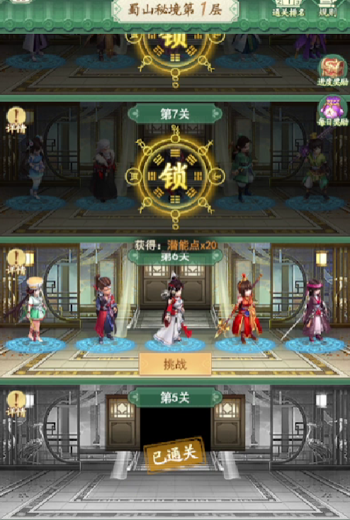 当玩家们在蜀山秘境中累积的仙缘值达到一定的数值时,所有的玩家都可以领取相应的奖励,但是如果其中一位玩家的仙缘值没有符合领取条件,那么所有的玩家都无法领取相应的奖励,在蜀山秘境中仙缘值还会有排名,排名前五的玩家们可以获得额外的奖励,奖励会在玩家的邮箱中进行发放。这些奖励一般都是法宝或者是高级的卡牌角色,对于玩家们来说是非常好的一个福利。