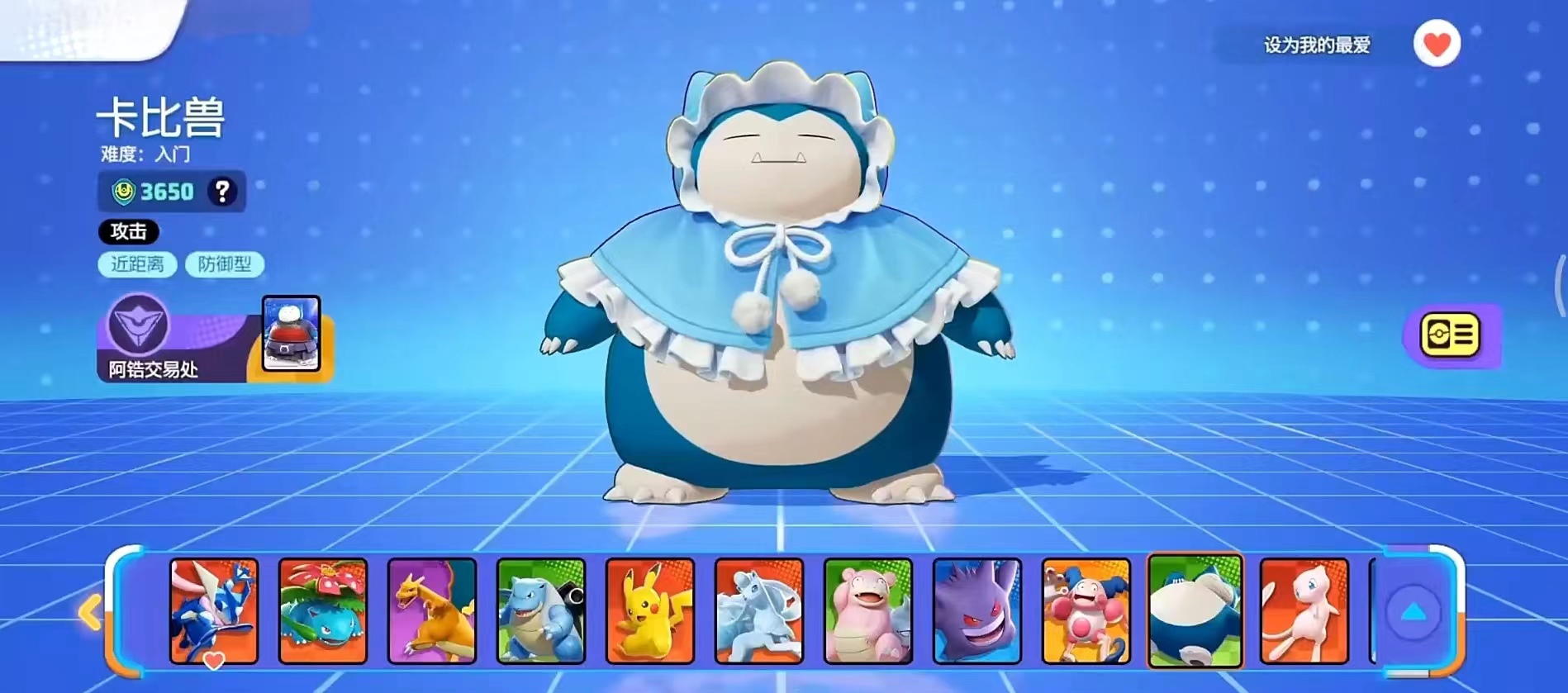 第三个为大家推荐的就是游戏当中的卡比兽,卡比兽相信大家都不会陌生吧?他的外观就是一个可可爱爱的蓝色小胖子,他在游戏当中是前排坦克位置,很难被敌方输出位置秒掉而且能扛能打,他自身还可以恢复hp,比其他角色都要更有持久续航性一些,他主要在阵容当中是作为抗伤的存在,前排坦克是十分不错的。