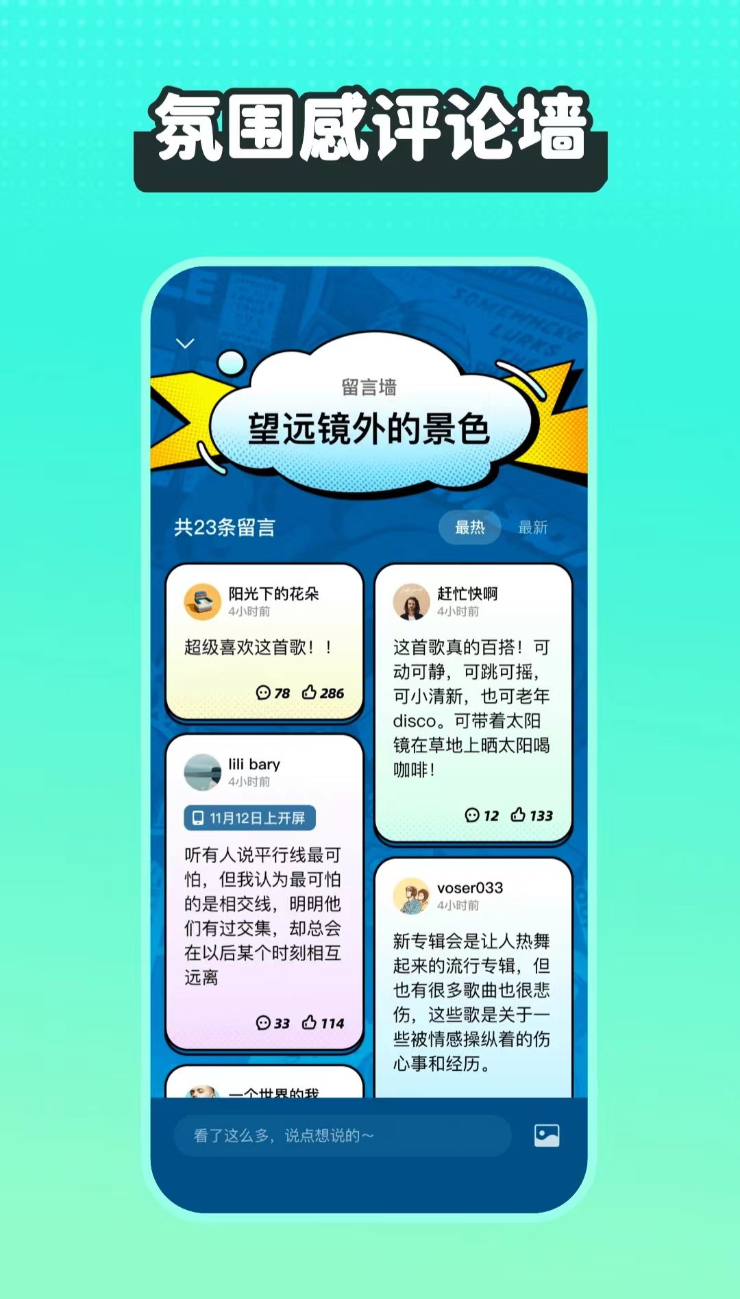 在波点音乐软件中,你不仅能享受三千万首音乐,还能和其他年轻用户一起交流,波点音乐推出的聚会墙、音乐频道等都能根据你的音乐喜好找到你的soulmate。在这里,用户可以融入更大的圈子,用户之间互动性的增强也让音乐变成了一种社交通道。