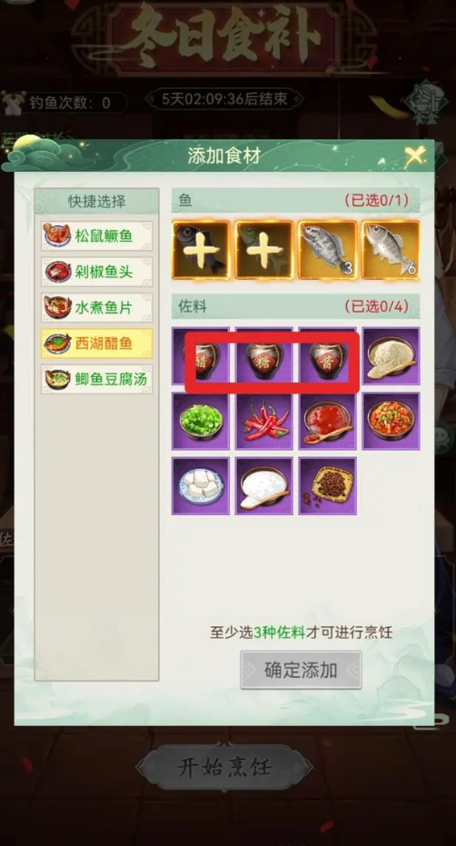 第二是西湖醋鱼,玩家将鱼烹饪好放置锅中加上醋和酱,糖就可以收汁完成了。完成这道菜之后,系统会赠送给玩家赵灵儿,姜婉儿,雷元戈,王小虎,李大娘,慕容紫英,巫后,玄霄等英雄。