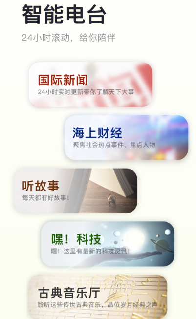 通过大数据智能算法推荐出喜欢的节目和声音,属于你的私人定制fm。其中有很多老年人特别喜欢的听书神器,内容极其丰富,比如家庭医生、健康养生、科学用药等一系列保健知识,还有老年人平时特别喜欢的相声评书。无论喜欢历史文学还是广播剧,都能在这里快速找到作为。打开应用非常迅速,没有太长时间的广告,简单几秒就能应用感受极速体验。