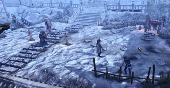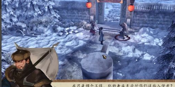 侠客风云传前传游戏中有大量精彩的剧情,为玩家构造了一个真实的武侠世界,想要顺利的开启山林地堡,就要先进入赛王府中,根据地图的路线来到雪地野店的旁边,打败赛王府的护卫,这些护卫的伤害普遍不高,所以对大家构造不到威胁,进入赛王府之后,尽量的小心行动,避开护卫,来到一个较小的庭院。