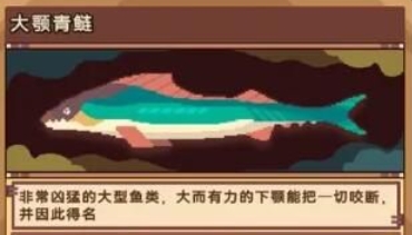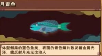 黄瓜鱼:是一个可以在浅水区域中钓上来的鱼类,颜色呈现翠绿色,所以看起来比较像一条小黄瓜,在水中玩家有时候也可以看见这种鱼类漏出水面的背脊,身体长度比较短。