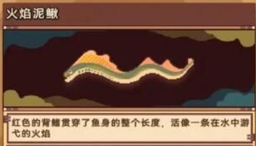 火焰泥鳅:猎奇一点的玩家都会比较喜欢这类鱼,在游戏中比较像蛇形的身体,在背部有整个红色的背鳍,长度能够达到90多厘米,是非常长的一类鱼,游动起来的姿态也很好看。