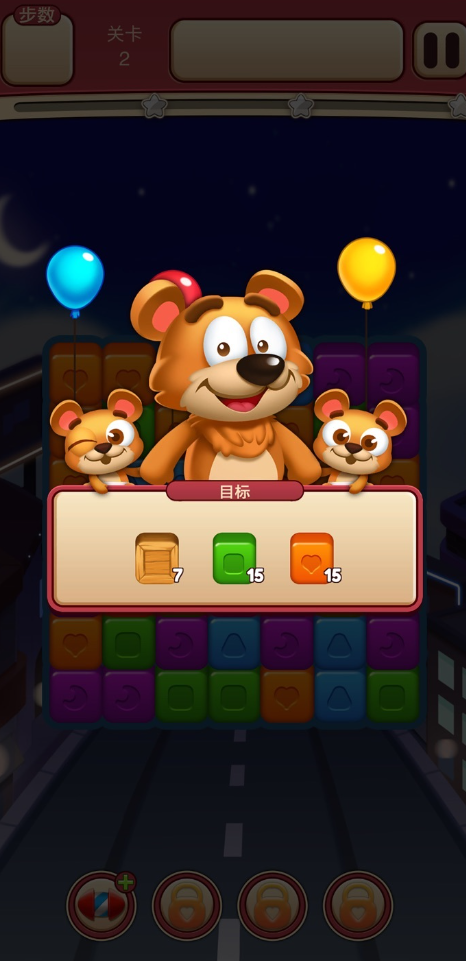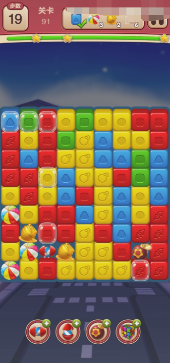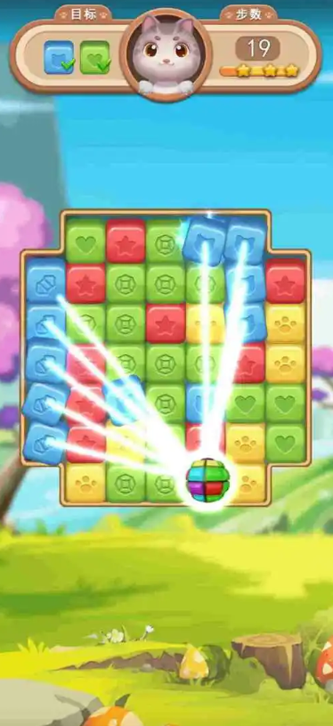 游戏整体采用的是那种闯关的形式,最开始的时候同色方块的摆放会比较密集,所以可以经常出现那种点一下就能消除一大片情况,不过越到后面的关卡,方块之间的摆放就会越来越分散,就会特别考验玩家们的思维能力以及预见性,需要动动脑筋才能够满足通关所需要的积分数量。