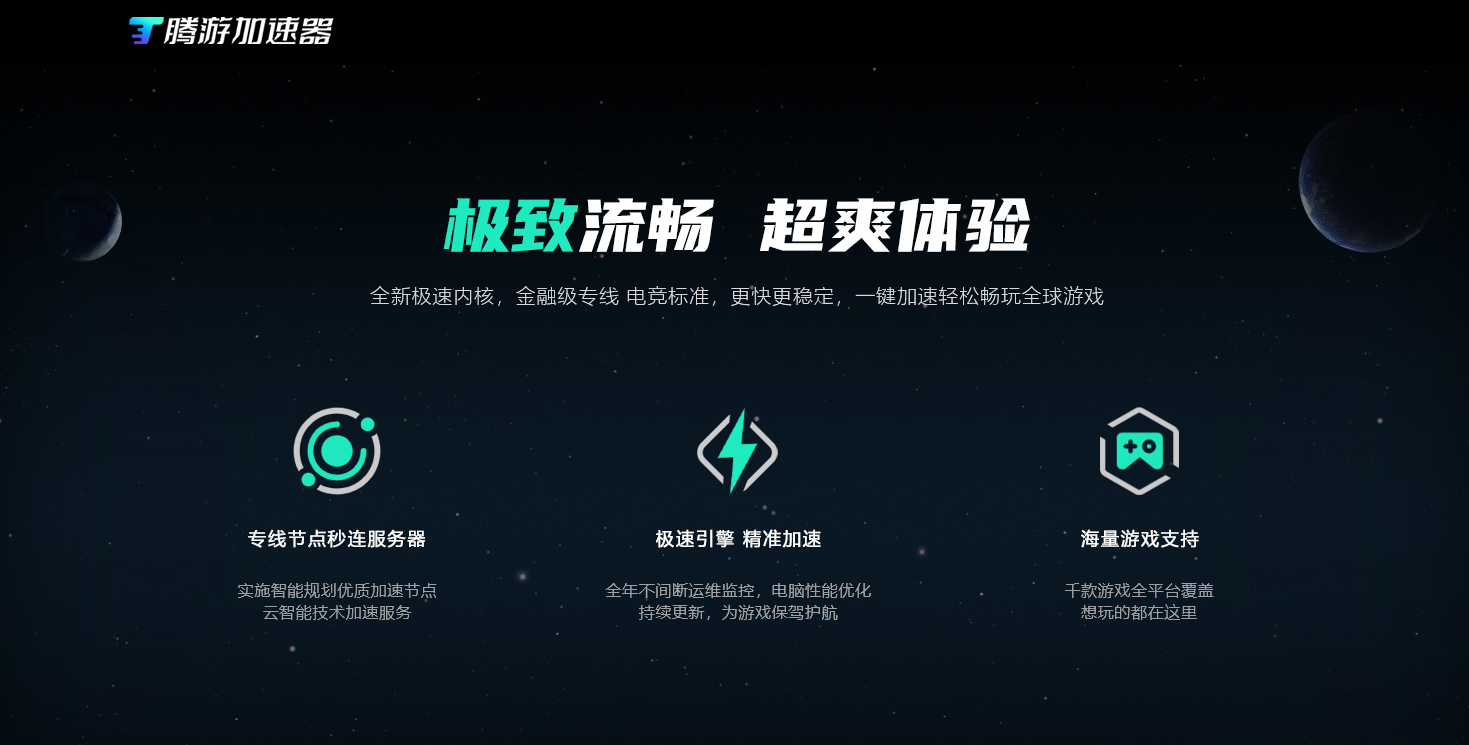 这是腾游加速器的国际版本,专门针对海外游戏设计,采用国际专线实行全球网络互联,已经做到了低延迟和消除丢包率,是大家跨服的好帮手。
