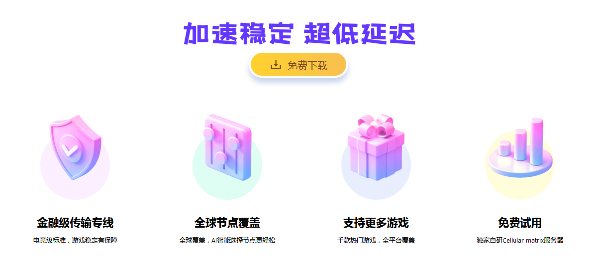 多款海外热门游戏,在这里都支持直接进行一键加速,尤其是因为波动而出现延迟高等问题,更是可以得到妥善解决,是大家玩竞技游戏上分的助力。