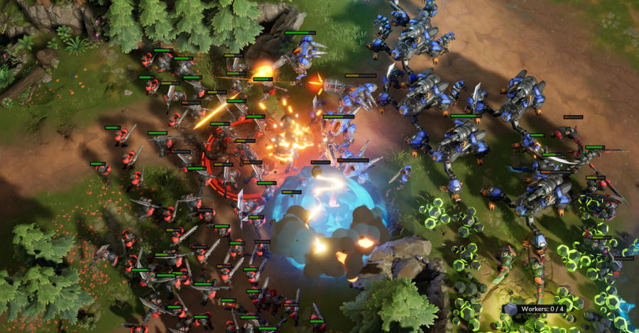 游戏的基本玩法是通过生产农民来采集两种资源:主要资源和科技资源。主要资源用于建造基地和生产单位,科技资源用于升级科技树和解锁特殊单位。游戏中有两种已公布的种族:人类先锋和地狱主宰。人类先锋是一个坚韧的种族,拥有先进的科技和强大的防御。地狱主宰是一个侵略性的种族,拥有恐怖的生物和强力的法术。每个种族都有自己的英雄单位,可以在战场上发挥重要的作用。