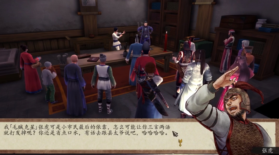 跟小白以及李微之进行交互之后,岳胖子正好就在偷东西,随后会触发岳胖子跟小白的战斗画面,之后小白报官岳胖子就会被抓,玩家就需要去找岳胖子进行交互,交互完需要分别是找一趟小白以及李微之喜欢的女子,也就是进价的大小姐,最后去找李微之走一段剧情。