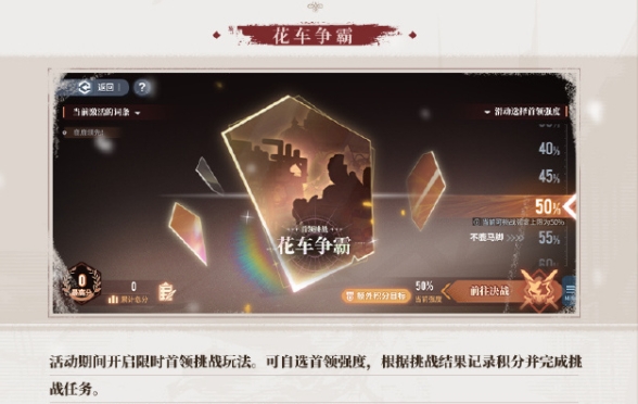 随后在见闻都收集好后可以按到徽章以及限定家具的奖励哦,花车争霸的玩法一样是在活动中更新的,大家可以在上面选择呢一个自己可以挑战的首领,只要大家挑战完成之后就可以记录上面的积分随后直接完成挑战的人物获取雪终币以及上面点数的奖励。