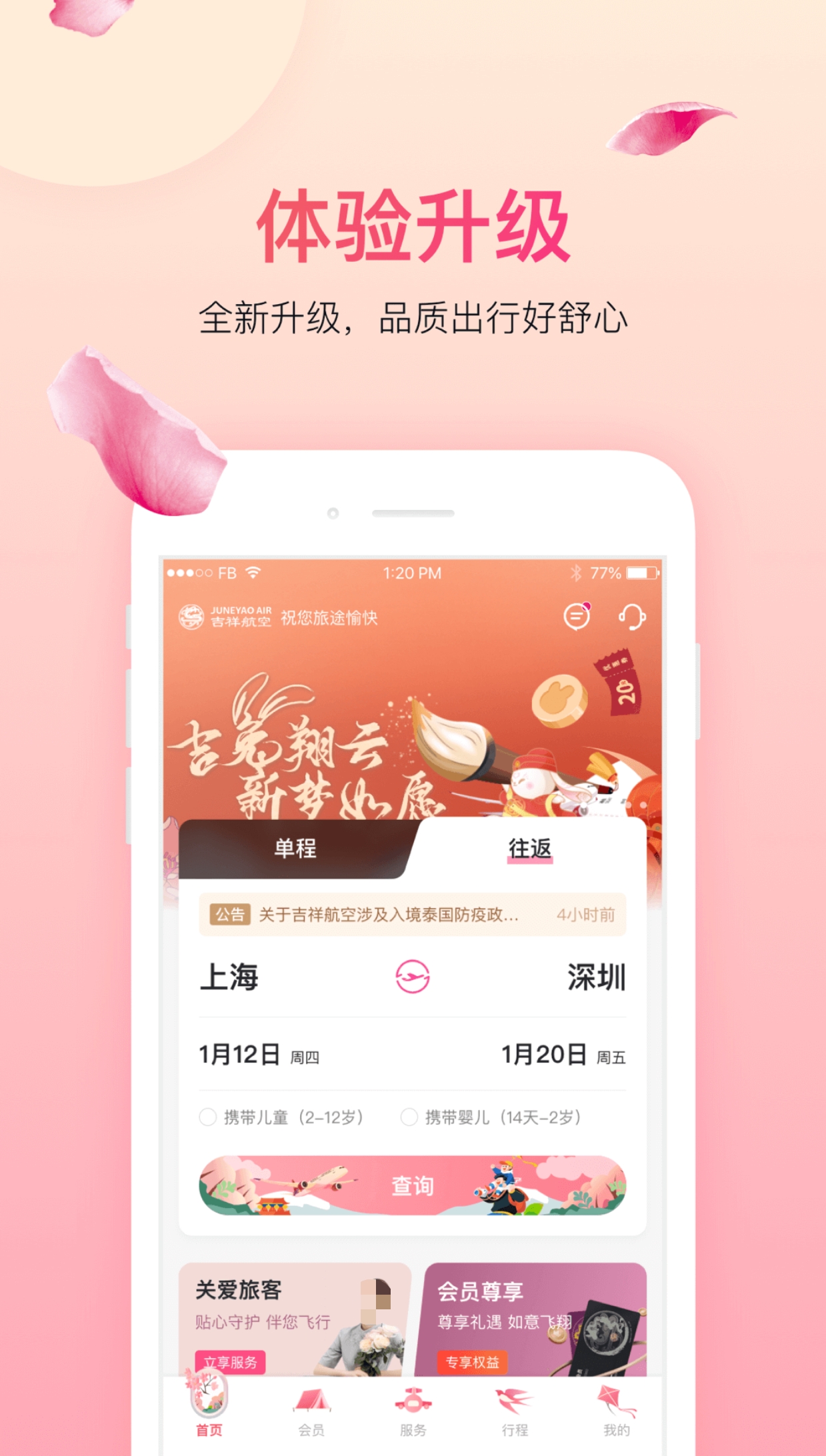 4.《吉祥航空》吉祥航空也是中国的一家航空公司,其官方软件提供了机票预订的实用功能。用户可以在该软件上轻松地预订吉祥航空的各个航班机票,并享受到优质的服务。使用该款软件后可极大程度的满足您的出行规划。