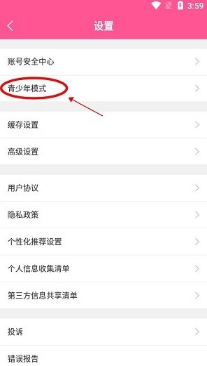 3.来到设置页面中,我们可以找到【青少年模式】;