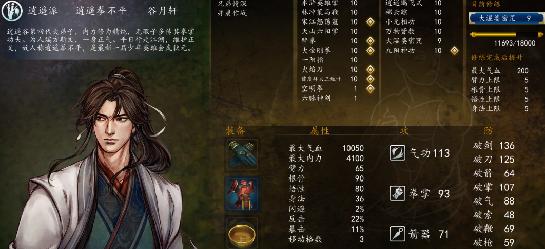 古家内功:古老头那里学习的内功,也可以用太极图来提升。古家内功的特点是可以增加内力和内功属性,还可以增加古家软兵法的伤害,是古实的辅助内功。