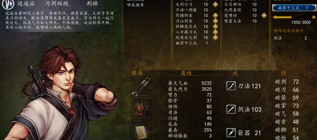 《侠客风云传前传》是一款以武侠为题材的角色扮演游戏,游戏中有多个队友可以招募,其中古实是一个擅长使用软兵器的高手,也是一个有趣的人物。今天讲解的是侠客风云传前传古实培养方向,古实的武学和内功都很不错,有着高的伤害和控制能力,还有自带的反击和反伤技能。古实的专属饰品太极图更是可以提升他的内功和武学的等级和属性,让他成为一个强大的队友。