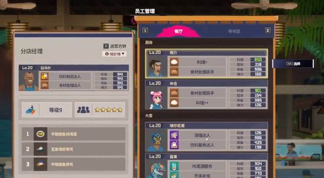 在这个游戏中,分店是不可以随意的更换菜单,只能通过控制食材的方法来有效改变菜单,比如在分店经理下面可以直接按照定制的方法,然后去排序,然后去卖对应的菜。分店员工界面还可以有效确认整个分店的经营方针,主要是按照价格来确定,接着就会运输对应的食材,可以进入到经营的阶段。
