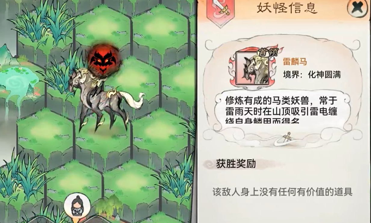 在大家的等级达到18级之后,游戏就会向大家开放清风平原了。在清风平原的副本当中,关底Boss是一只境界高达化神境大圆满的雷麟马,在游戏刚开服的几天内,大家的弟子等级是不足以打败他的。所以我们要换一种方式来获取最终的奖励。