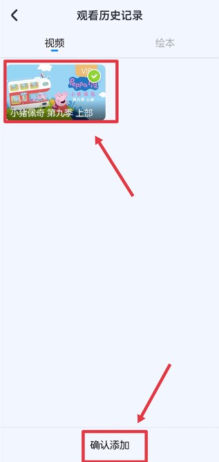 3.最后选择需要拉黑名单的视频、绘本,确定添加即可完成。