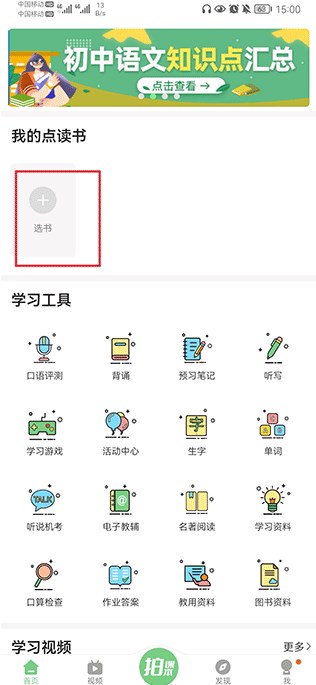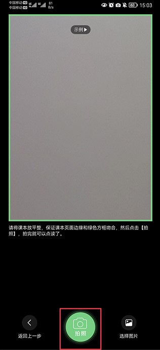 4.如果没有找到自己想要的课本,大家可以将实体书放好,通过拍课本功能来进行点读。