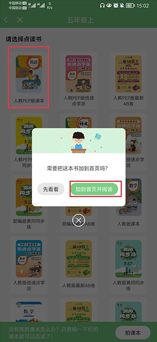 3.选择好年级之后,在点击选择想要添加的课本,确定加到首页即可;